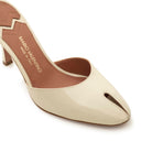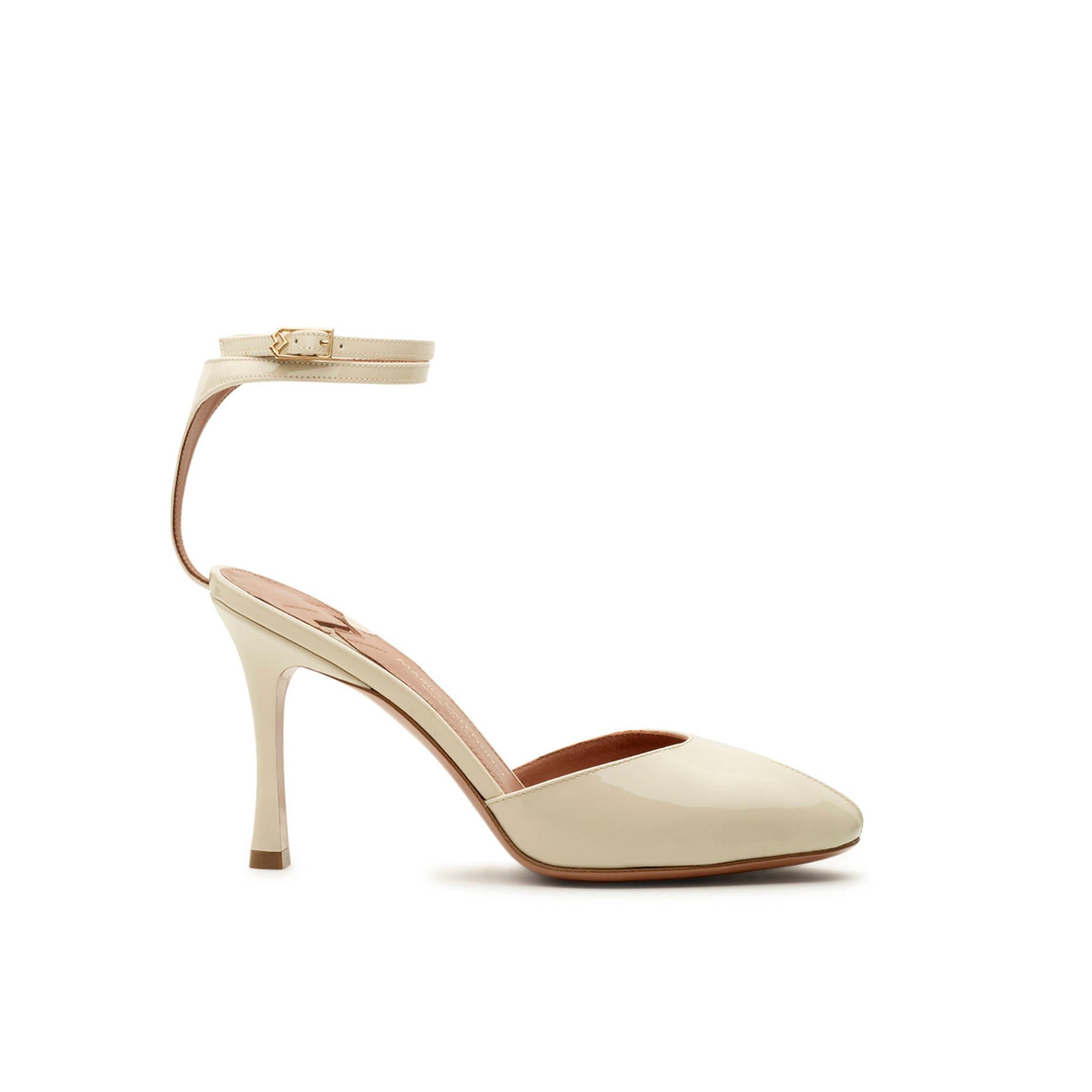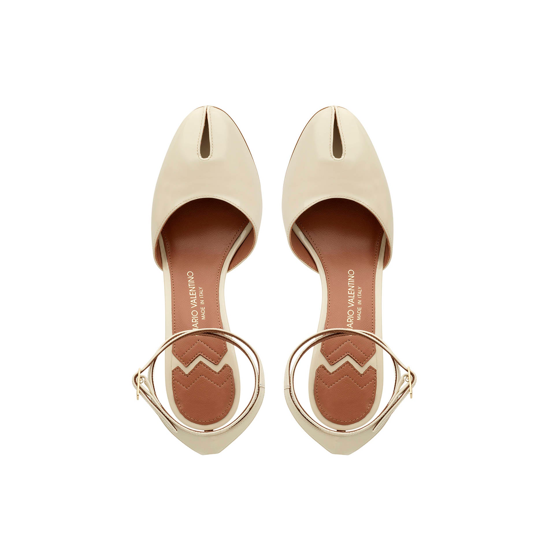 Graceful feminine and romantic, the new sandal Lucy is made in glossy patent leather. An elegant almond toe gives life to a refined see-through effect thanks to the thin oblò. The double strap delicately wraps around the ankle with sensual delicacy, while the high heel highlights its design.