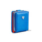 Functional elegance for the compact wallet presented in bicolor calfskin. The outer closure is clip-on while the interior has several slots for credit cards, a compartment for banknotes and a practical side pocket for coins.