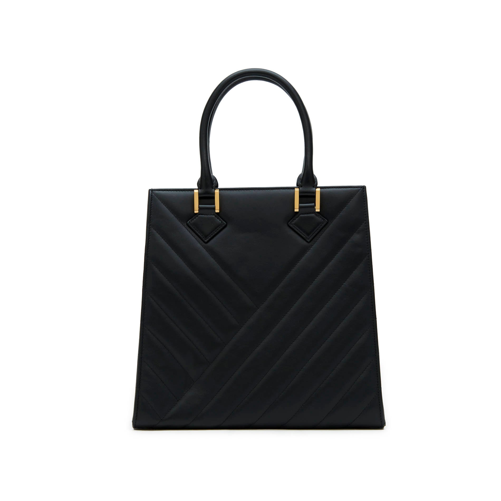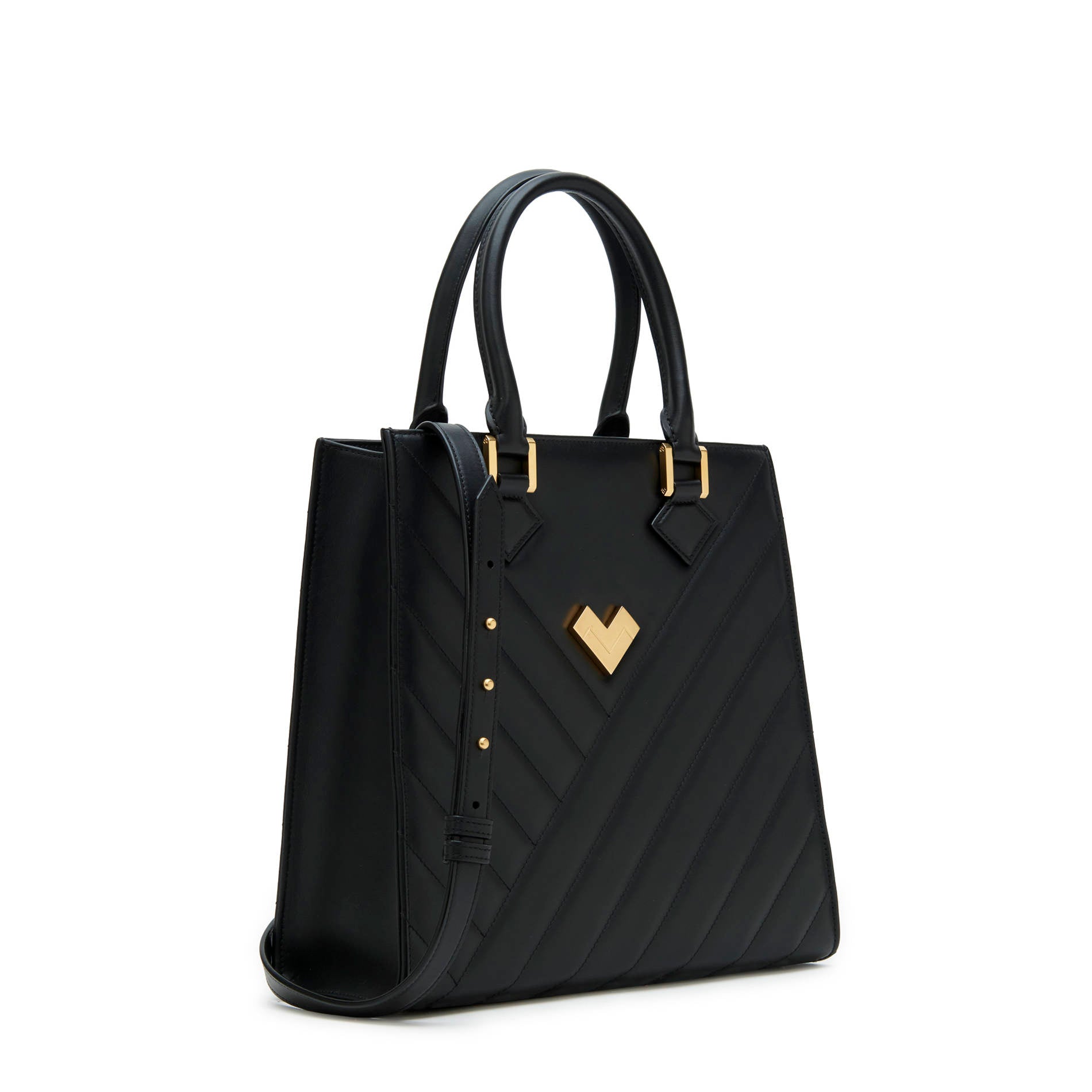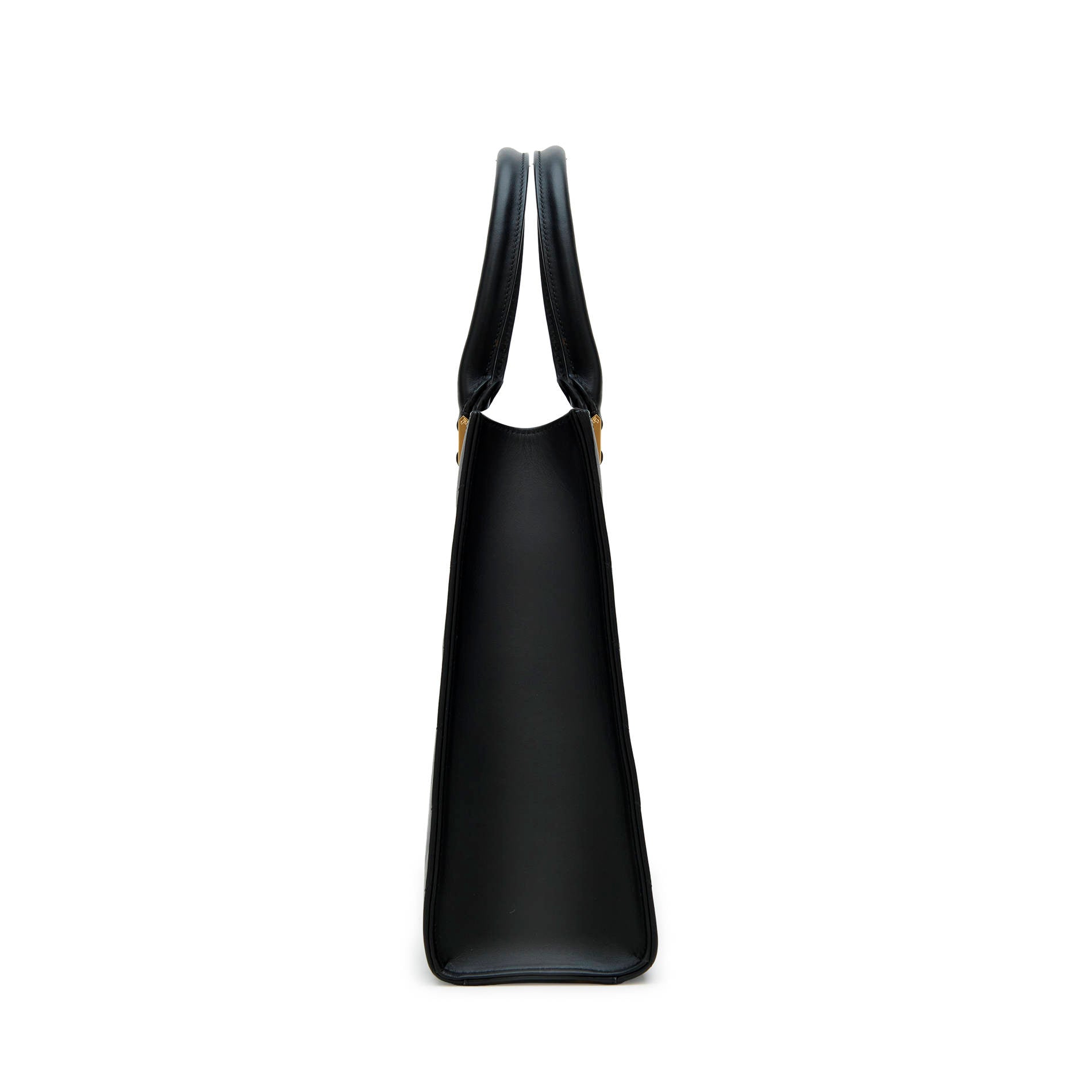 Quintessence of the Maison’s heritage, the new MV Icon bag tells a story of timeless elegance and craftsmanship.Modern and sophisticated, proposed in midi version, reimagines Mario Valentino's aesthetic codes thanks to a linear silhouette and a structured design. The soft calfskin is meticulously adorned with stitching that reveals a geometric pattern, the golden logo decorates and completes the overall result. Leather handles and adjustable and removable shoulder strap, it can be carried by hand, shoulder or cross-body.
