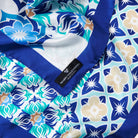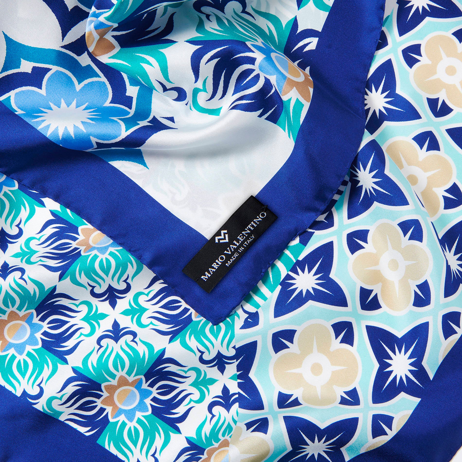 A dazzling palette for new eye-catching prints. Modern stylized floral graphics, in a fluid game of repetitions and dimensions, create surprising optical effects on this silk scarf by Mario Valentino.