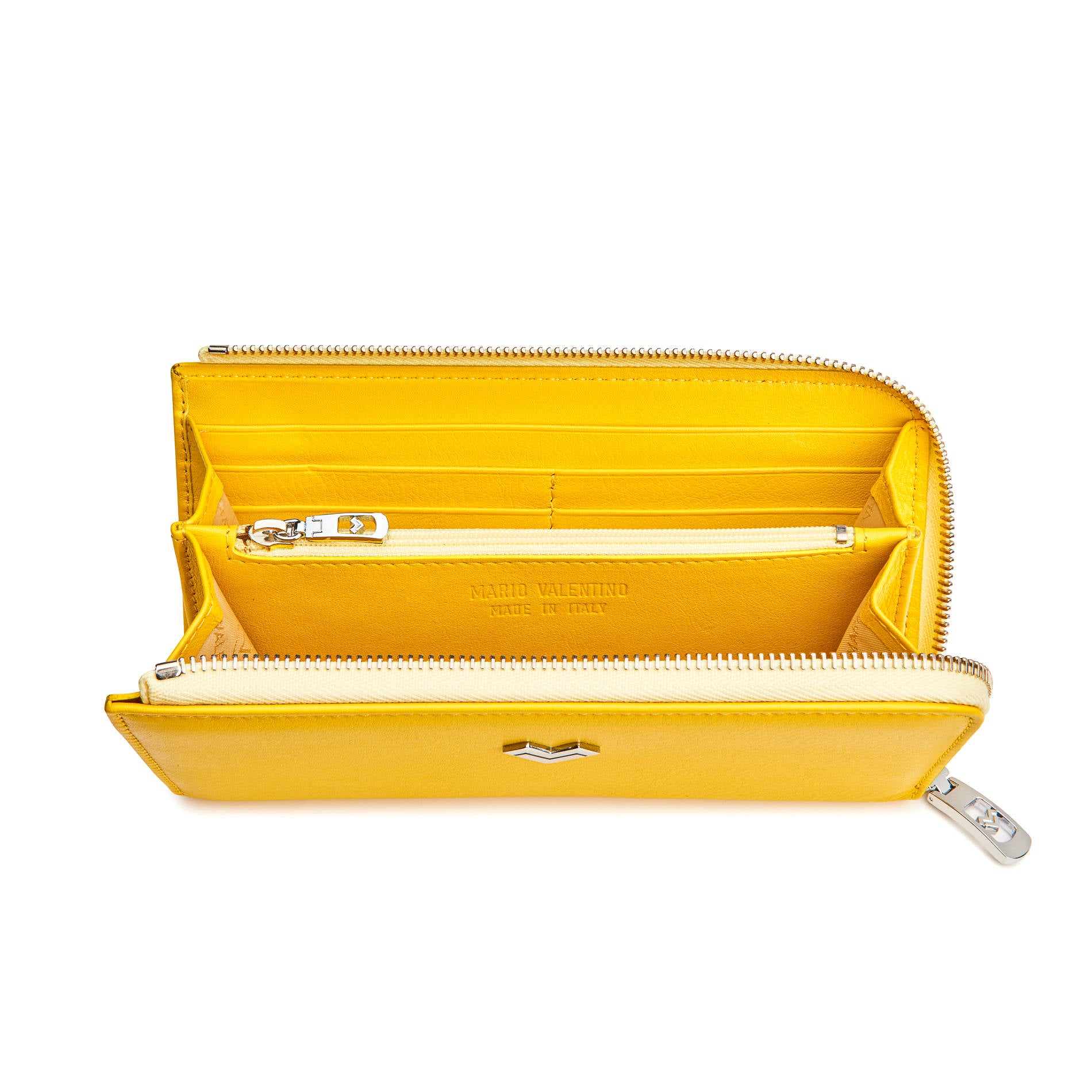 Vibranti tonalità ed eleganza essenziale per il portafoglio organizer con chiusura total zip, realizzato in morbido vitello. Il funzionale interno presenta molteplici scomparti di utilizzo: fessure per carte di credito, comparto per banconote e taschino con zip per le monete.