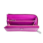 Vibranti tonalità ed eleganza essenziale per il portafoglio organizer con chiusura total zip, realizzato in morbido vitello. Il funzionale interno presenta molteplici scomparti di utilizzo: fessure per carte di credito, comparto per banconote e taschino con zip per le monete.