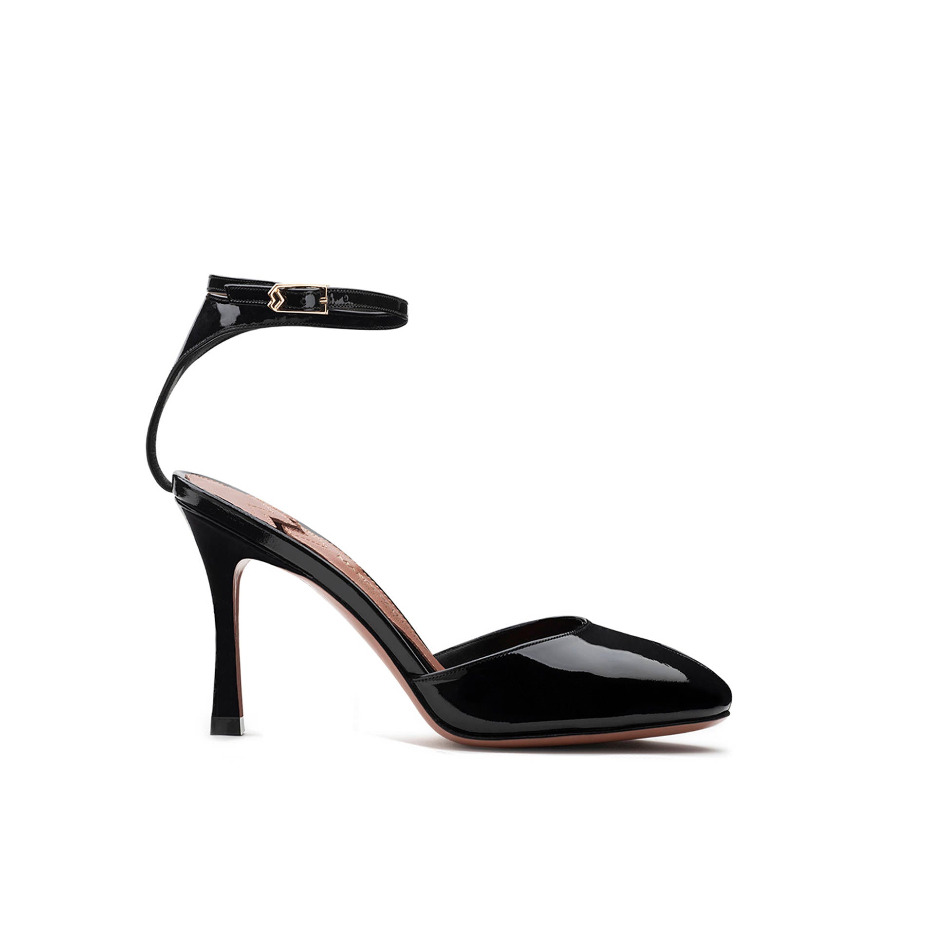 Celebra la femminilità e il romanticismo, il nuovo sandalo Lucy è realizzato in brillante vernice. L'elegante punta almond dà vita a un raffinato gioco vedo non vedo grazie al fine oblò d’ispirazione retrò. Il doppio cinturino avvolge la caviglia con sensuale delicatezza; il tacco alto ne enfatizza il design.