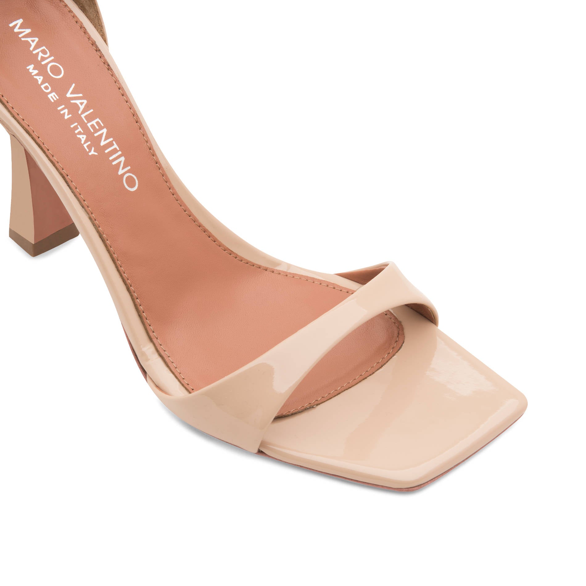 Iconico e senza tempo, il sandalo open Mario Valentino da sempre incarna la sensuale eleganza di un design minimal, al contempo iperfemminile. Punta squadrata e tomaia in vernice lucida declinata in più toni, creano uno stile moderno e ultra glam. Il cinturino alla caviglia impreziosito dal logo MV, lo rende perfetto per un look ricercato ed elegante.