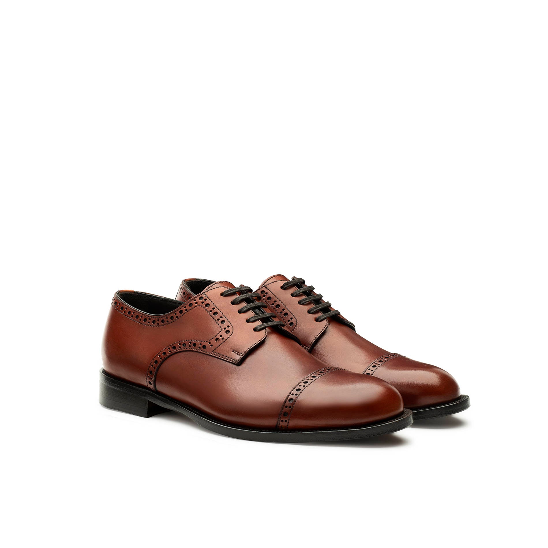 Ispirazione english e vitello di altissima qualità per questa nuova proposta di scarpa Derby. Un design classico e raffinato impreziosito dal motivo quarter brogue sulla tomaia, sinonimo di disinvolta eleganza e sapiente tradizione artigianale.