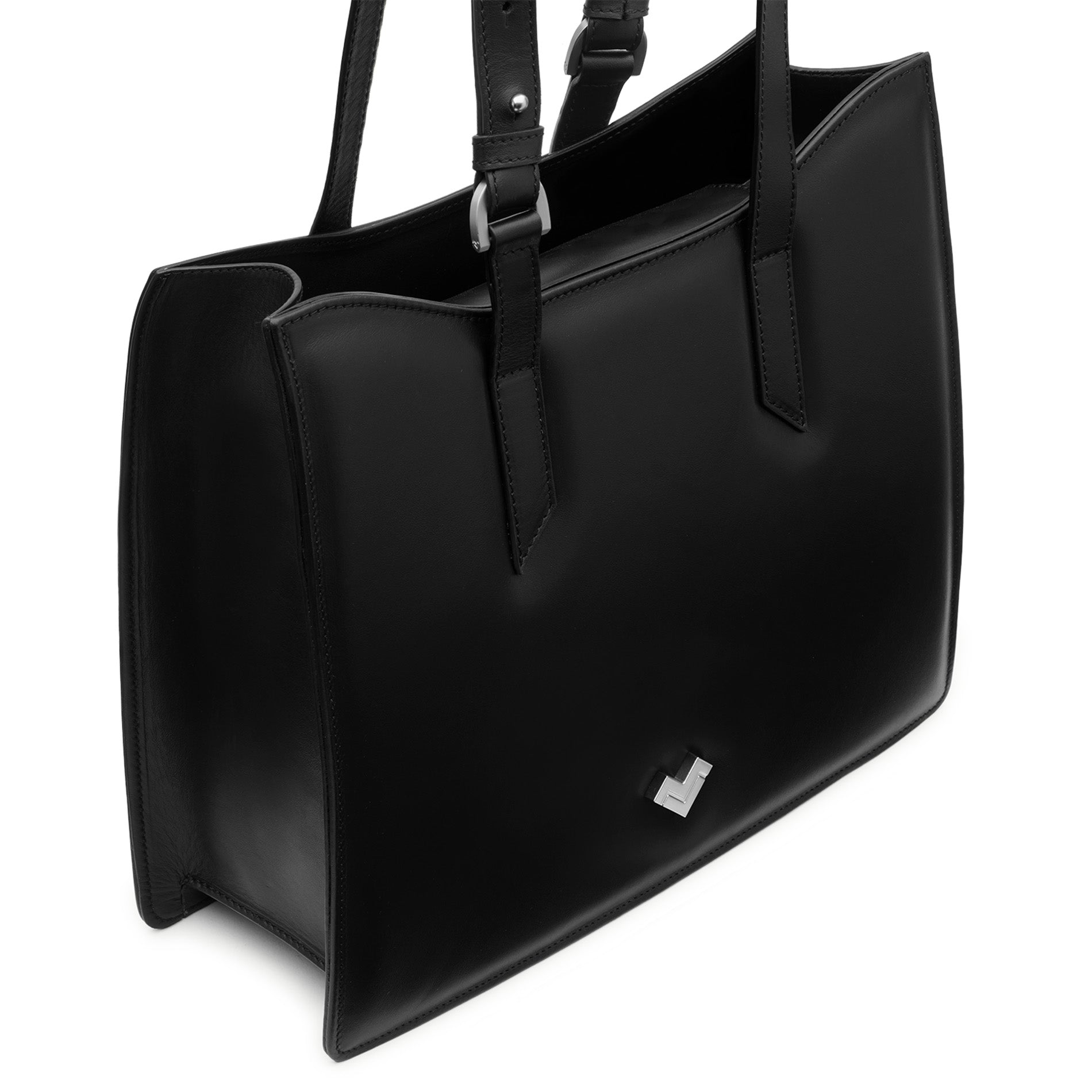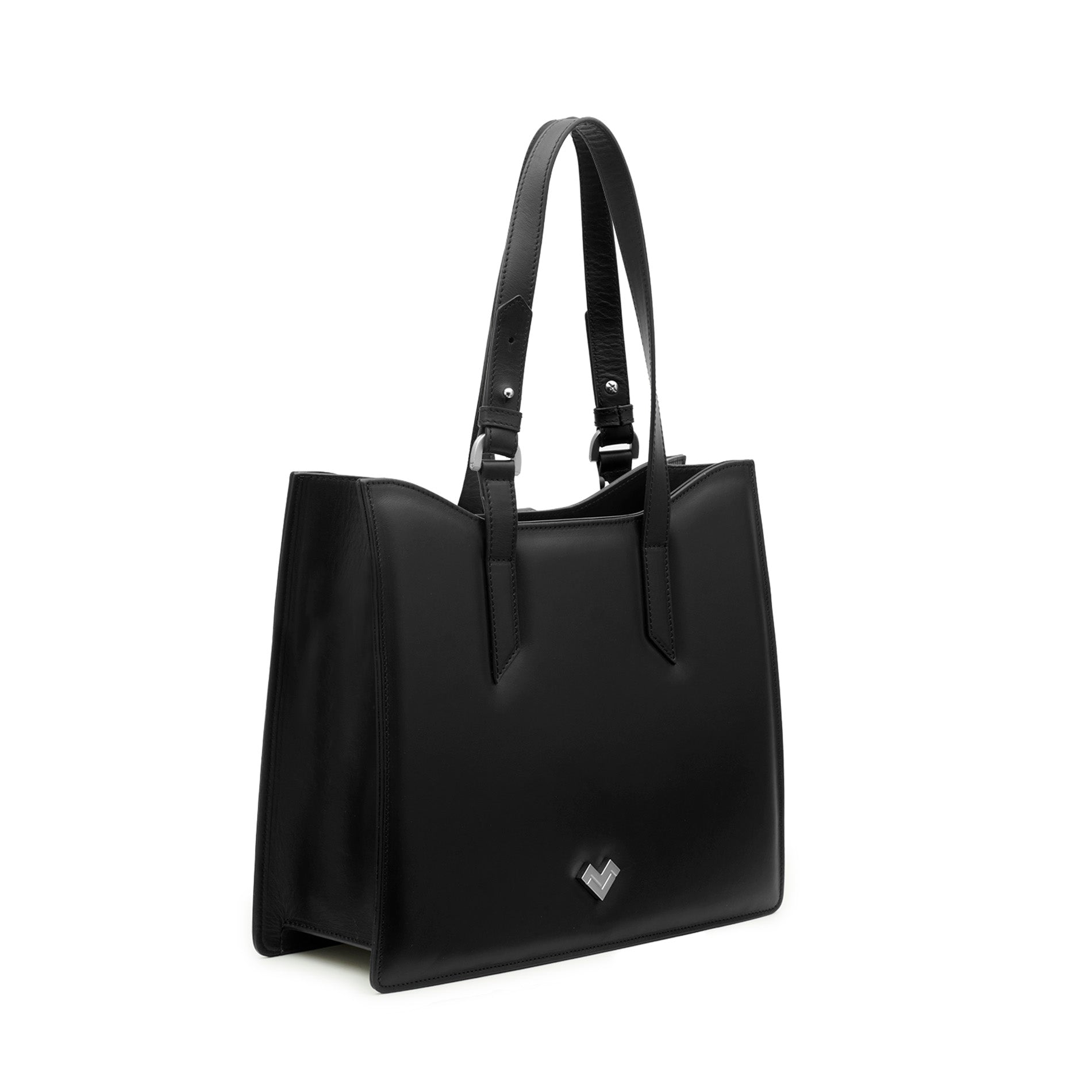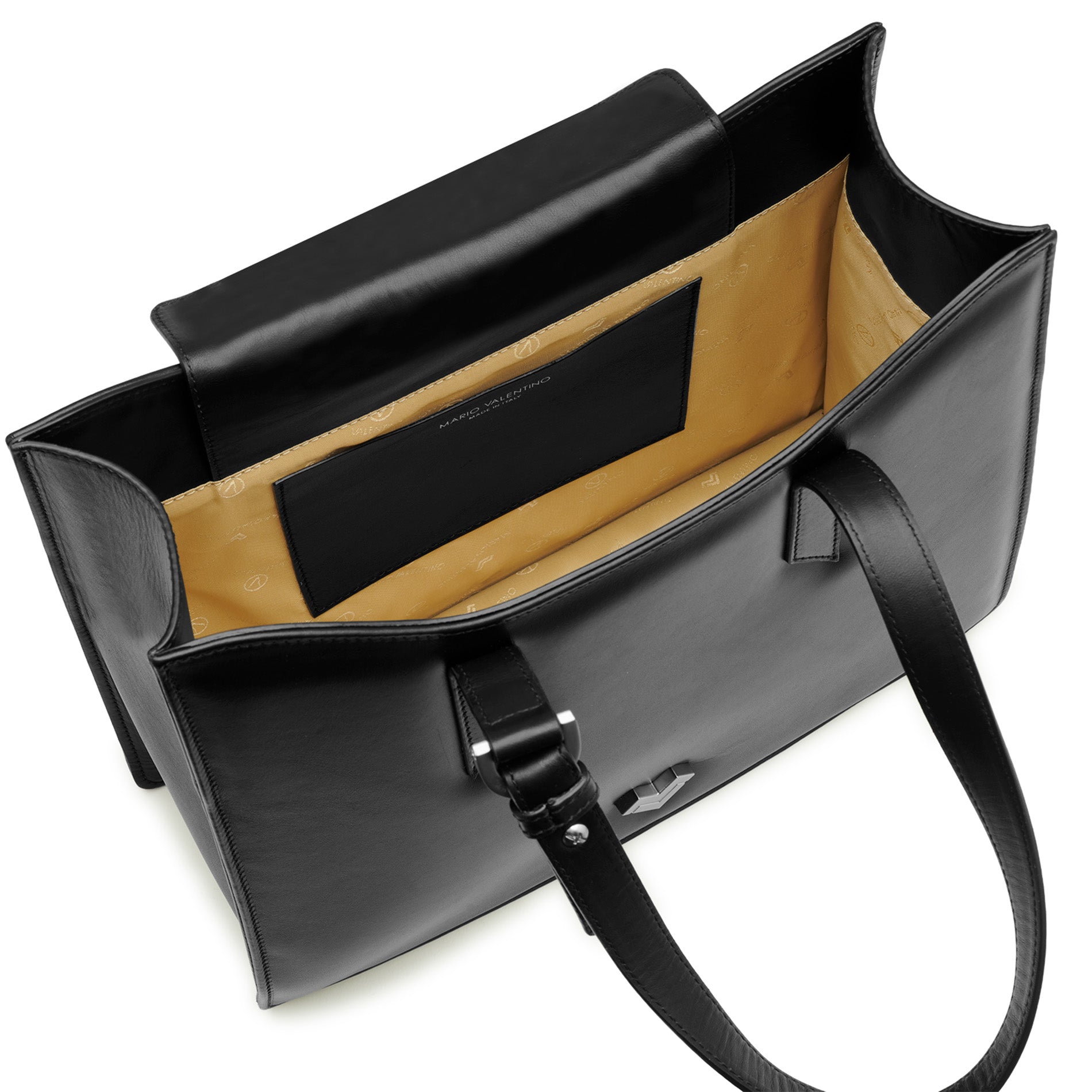 Essential lines and structured design define the personality of this Mario Valentino branded bag. The stiff silhouette combines with soft, rich calfskin and the iconic metal logo enriches its smooth surface. Two adjustable handles offer versatility of use, making it perfect to wear both by hand and on the shoulder all day long. An essential accessory that combines timeless comfort and style.